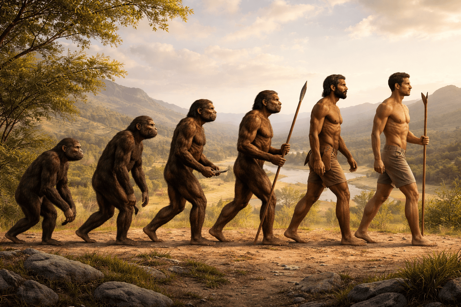 たしかに、これは最も有名なイメージのひとつですね。ここでは、そんな人類の進化の歴史を詳しくみていきましょう。