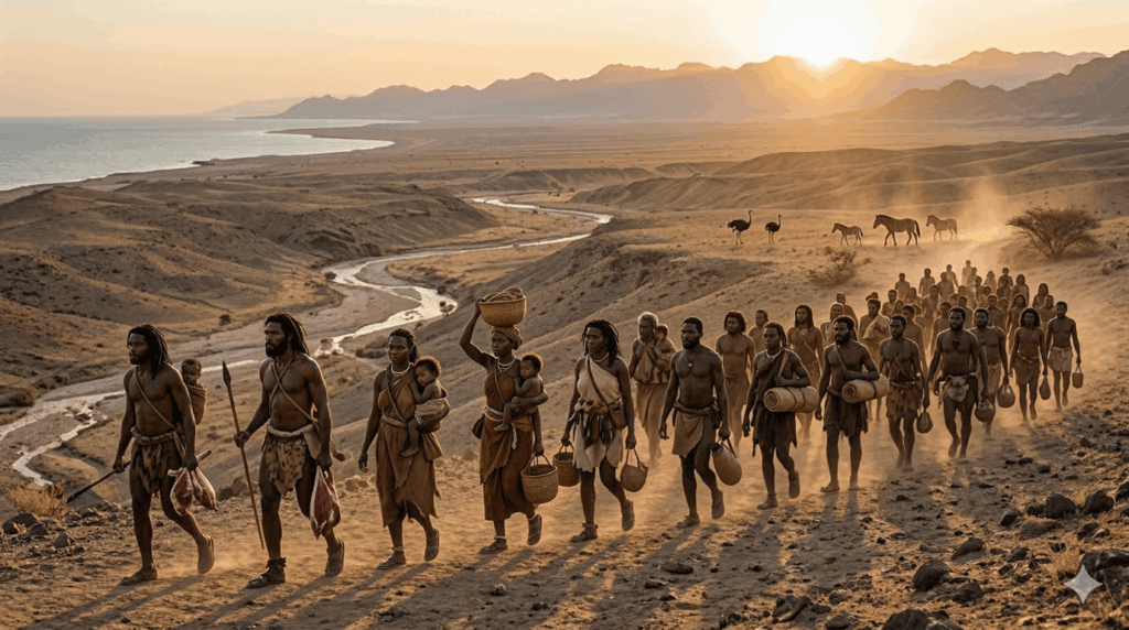 アフリカで誕生した人類が、世界各地へと移動し始めたのがこの時期です。