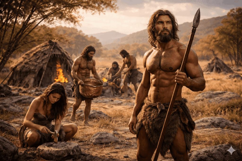 それでは、最新のAIで出力した各時代の人類のイメージ写真も併せてみていきます。