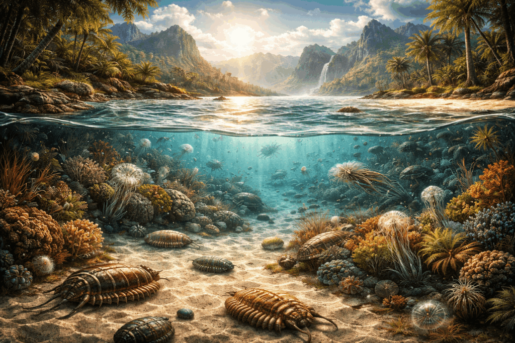 今から5億4200万年ほど前のカンブリア紀になると、海中には多様な生物があふれるようになりました。カンブリア紀に誕生した多くの生物は、体を動かすために神経細胞が集合した「神経節」を獲得していました。